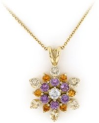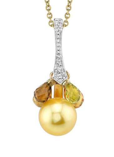 Black Friday 2010 14K Two-Tone Gold Golden Pearl, Multicolor Gemstones and Diamond Pendant with Chain