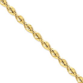 14k 6mm Handmade Regular Rope Chain 22 Inches