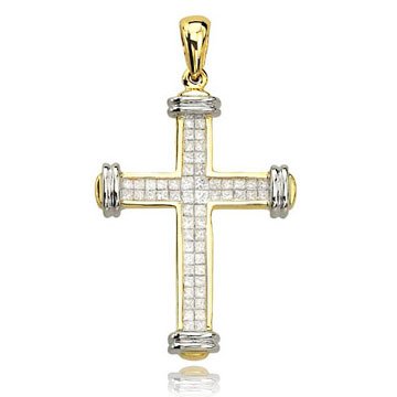 >>>> Only $972.99 Best Buy A beautiful two tone 14K gold cross diamond charm pendant can be worn on any occasion. This pendant has many dazzling princess cut diamonds. The diamonds are SI-I in clarity, and G in color. Features white gold caps.