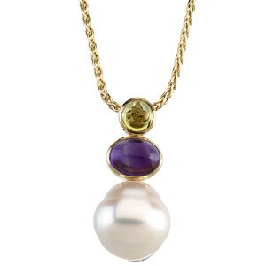 14k S. Sea Cult. Pearl Per. Ame. Pendant 12mm 5mm /8x6mm