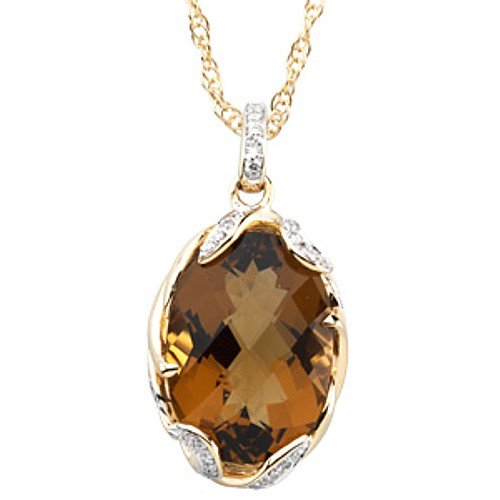 Cinnamon Quartz: 18.00x13.00mm Oval Cut. Diamonds: 0.33 Ct. Total Weight Round Cut.
