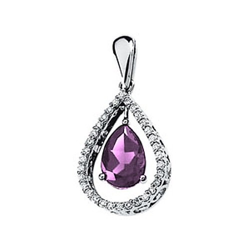 Amethyst: 10.00x7.00mm Pear Cut. Diamonds: 0.33 Ct. Total Weight Round Cut.