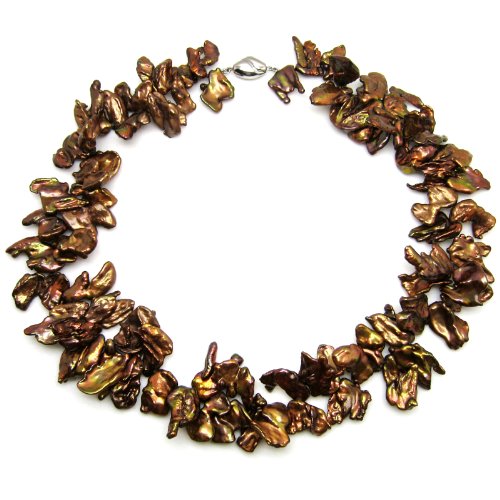 >>>> Only $1,295.00 Best Buy All we can say is "Wow"! This drop-dead-gorgeous chocolate pearl necklace is crafted from handpicked premium pearls. At an enormous size of up to 25mm wide, this necklace lies wider than a U.S. quarter at the widest point. Freshwater keshi-shaped pearls of this size and quality are very rare, and this beautiful necklace is guaranteed to draw jealous eyes. This necklace is for the true (No Suggestions) who can easily pull off a Hollywood look. Be prepared to handle the compliments and questions that come your way about what you are wearing. The necklace is hand knotted with matching fine thread and finished with a premium sterling silver clasp. Limited quantities remain, and due to the rarity of the pearls we will not be able to produce any more this year.